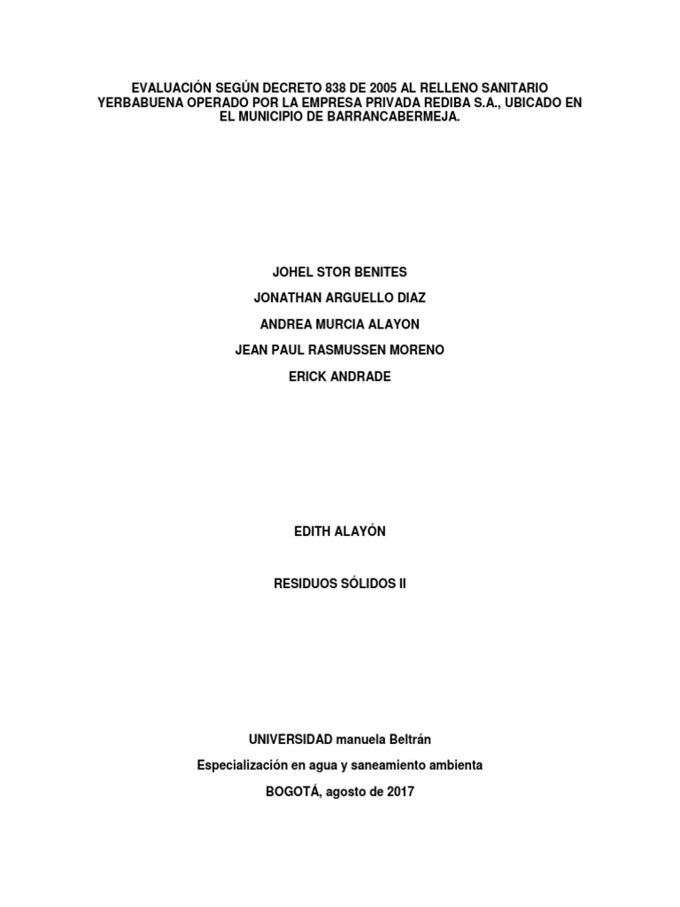 Fresco 21++ Decreto 838 De 2005. Decreto 838 de 2005 establecen criterios a tener en cuenta para la identificación y selección de áreas para localización de rellenos sanitarios. Sobre disposicin final de residuos slidos y se dictan otras disposiciones. Trata de residuos sólidos ( decreto 838 de 2005 ( corresponde al área…: Fixa os preços mínimos básicos para cafés arábica e robusta, safra 2005/2006.