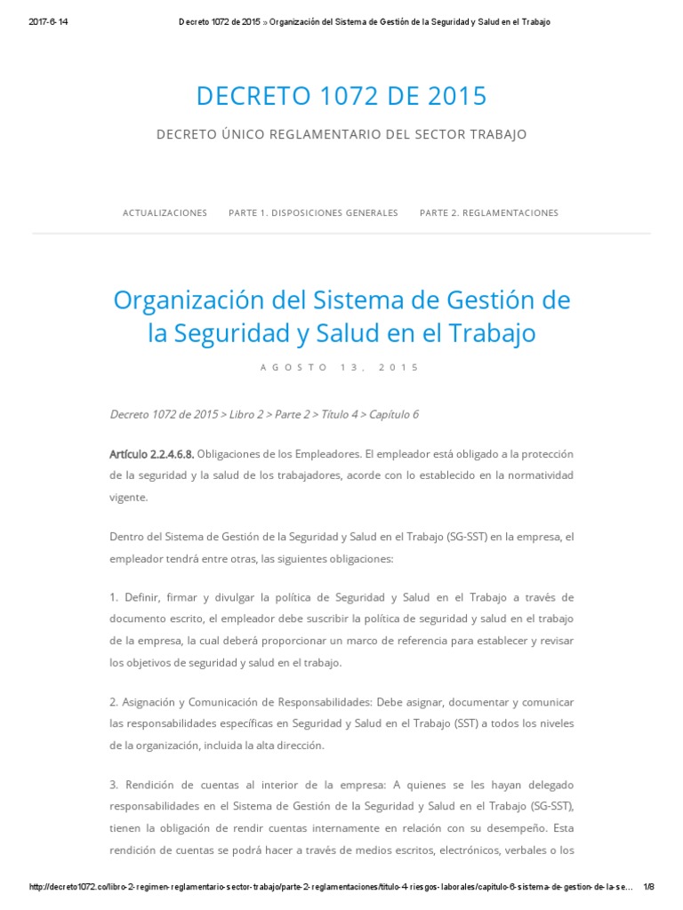 Decreto 1072 De 2015 Seguridad Y Salud En El Trabajo - Decreto 1072 De 2015 Sm Safe Mode