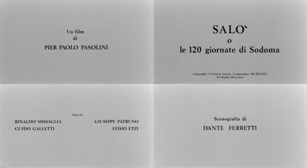 Pier Paolo Pasolini Salo - The Milanese Salo The 120 Days Of Sodom Title Sequence Pier Paolo Pasolini 1975