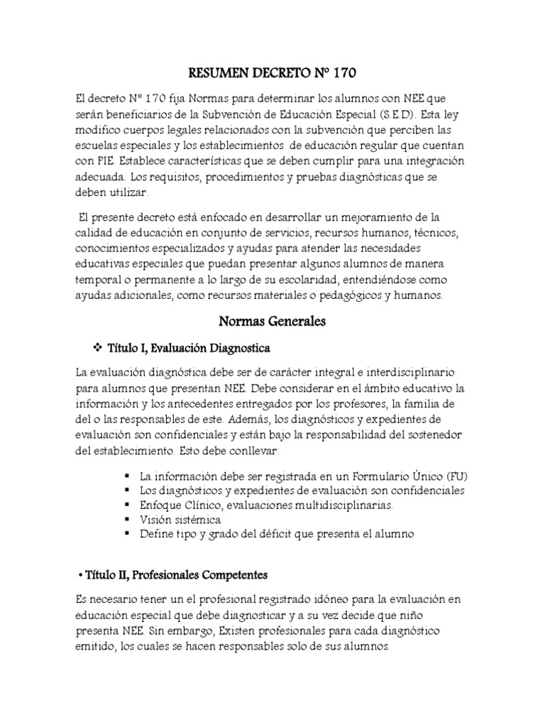 Nuovo 10+ Decreto 170 Profesionales. Presencia de limitaciones sustantivas en el funcionamiento actual. En educación diferencial, mención tea: C) notificar a la superintendencia de riesgos del trabajo los accidentes y enfermedades profesionales que se produzcan en el establecimiento. ¿qué establece el decreto 170?