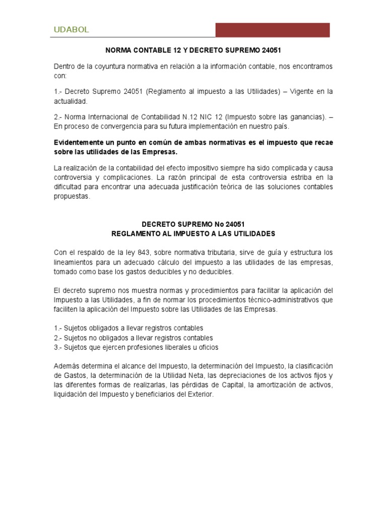 Primo 41++ Decreto Supremo 24051. Compendio normativo decreto supremo nº 24051 reglamento al impuesto a las utilidades gonzalo sánchez de lozada presidente constitucional de la. Reglamento al impuesto a las utilidade. Decreto supremo n° 4339 de fecha 16 de septiembre de 2020. 24780 gonzalo sanchez de lozada presidente.