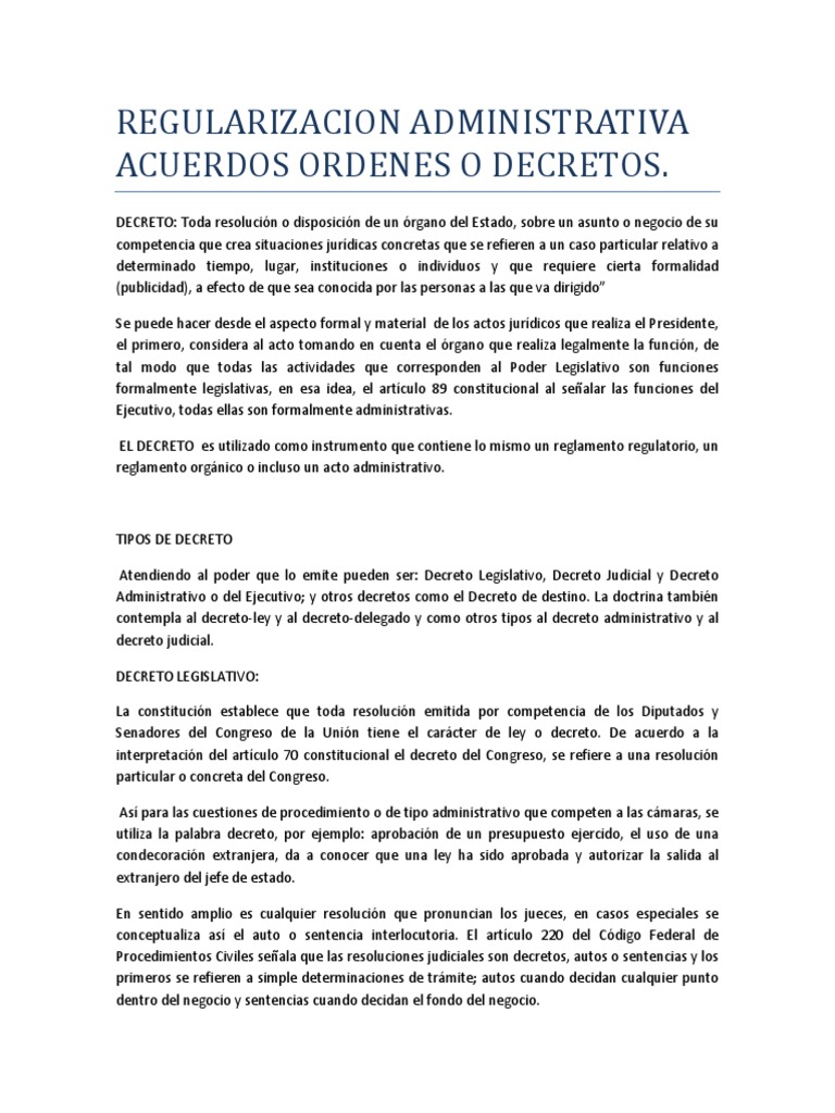 Decreto Ley Y Decreto Delegado - El Decreto Como Acto Administrativo Ley Administrativa Dominio Eminente