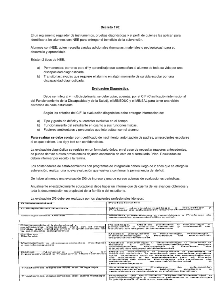 Decreto 170 Mineduc - Evaluacion Psicopedagogica Y Curricular 2010 Mineduc